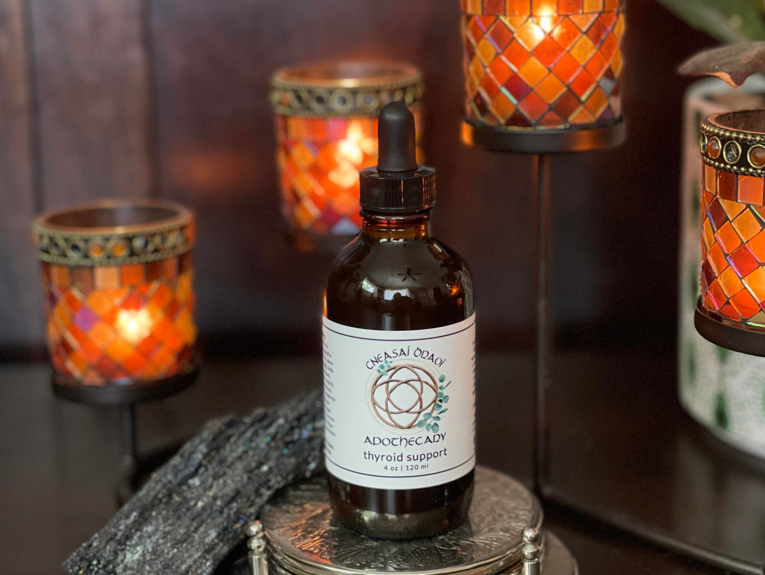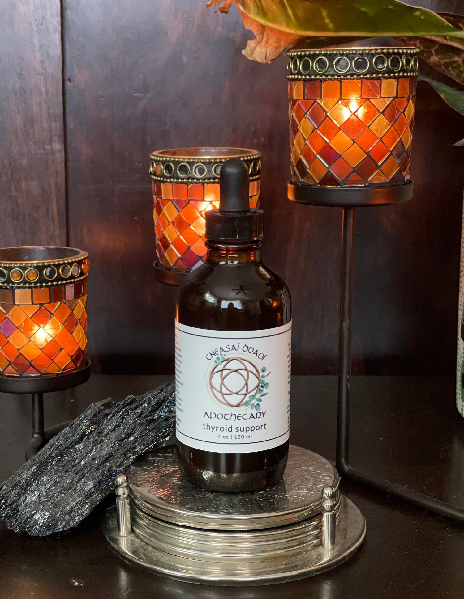 Support your thyroid naturally by giving it the minerals and other supporting nutrients it needs to function optimally. Beautiful combination of sea veggies, medicinal mushrooms, anti-inflammatory and adaptogenic herbs is formulated to do just that!*We do highly recommend that a good selenium supplement be taken in conjunction with this remedy for optimal thyroid support, especially if you live in a area where the soil is selenium deficient or if your food is not grown locally in an area of good selenium levels in the soil. Selenium is also important for good immune function and other body systems so is just an all-around good idea!INGREDIENTS: Bladderwrack (Fucus vesiculosis), Ashwagandha (Withania somnifera), Coleus Root (Coleus forskohlii), Kelp (Ascophyllum nodosum), Guggul (Commiphora mukul), Alfalfa (Medicago sativa), Reishi Mushroom (Ganoderma lucidum), Cordyceps Mushroom (Cordyceps sinensis), Turmeric (Curcuma longa), Black Pepper (Piper nigrum)TO USE: Take 3 dropper pulls twice daily under tongue or in water. When optimal results are achieved, may reduce dosage to 2 dropper pulls twice daily and then to 3 dropper pulls once daily depending on your body’s feedback.*This statement has not been evaluated by Health Canada. Not intended to diagnose, treat, cure or prevent any disease.